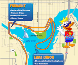 Stretching nearly 20 miles from historical Pioneer Square to quirky Fremont, youââ¬â¢ll see all the sights of Seattle, plus a lot more on your 90-minute land and water Duck Tour! Fall in love with Seattle on this fun-filled, wacky, quack-y continuous tour, packed with local folklore, historical information, jokes and music! Your USCG-certified Captain and Tour Guide will keep you dancinââ¬â¢ in your seat, rollinââ¬â¢ in the aisles and surprising your friends with long shot trivia bits at the drop of a hat!